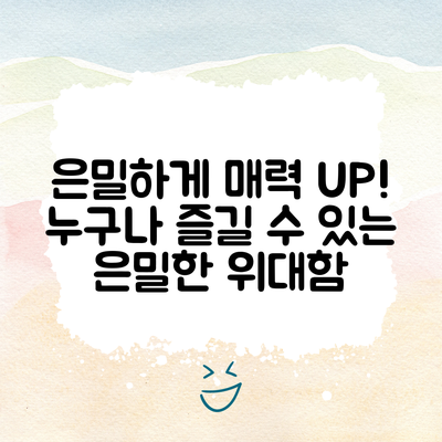 누구나 쉽게 즐길 수 있는 ‘은밀하게 위대하게’ 매력